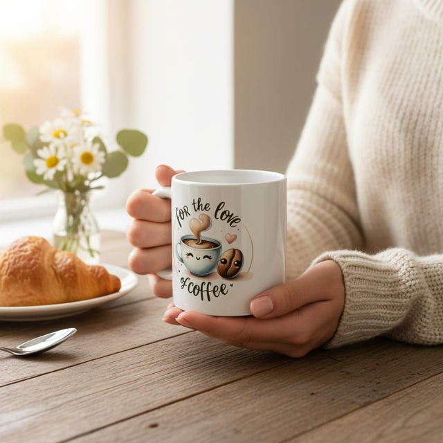 Celebrate your passion with the "For The Love Of Coffee" Ceramic Mug, designed especially for coffee lovers. Crafted from high-quality ceramic. Its sleek design and heartfelt message make it a perfect companion for your morning brew, office desk, or cozy moments at home. Whether you're sipping espresso, latte, or your favorite blend, this mug adds a touch of charm to every cup. Ideal as a thoughtful gift or a personal treat, it’s a must-have for anyone who truly appreciates the art of coffee. Elevate your coffee experience with this stylish and functional mug today!