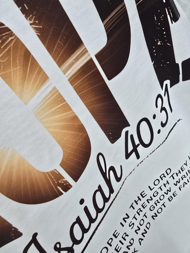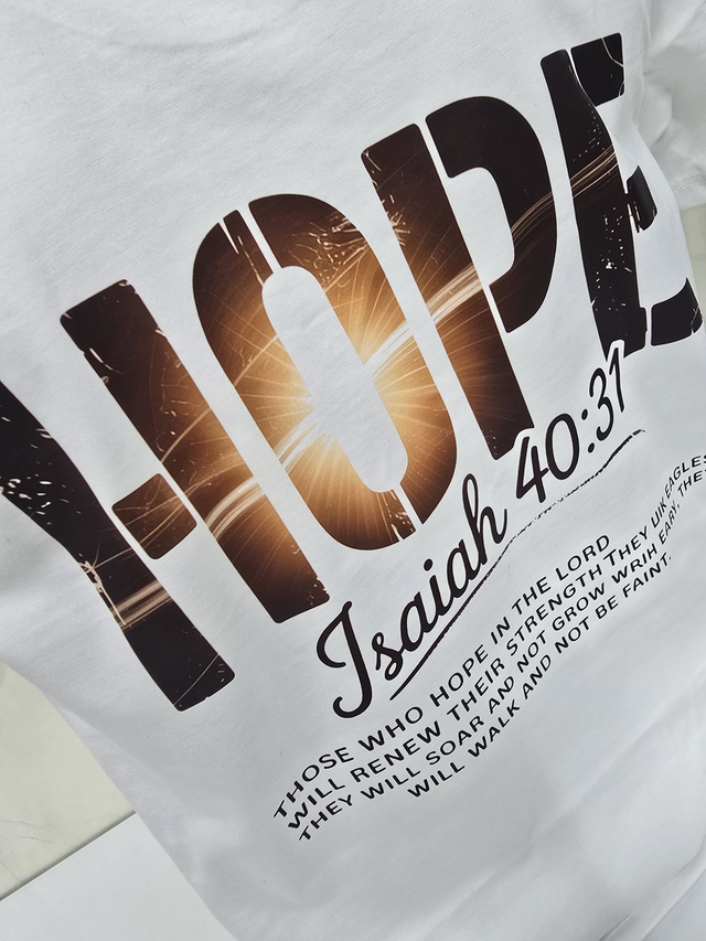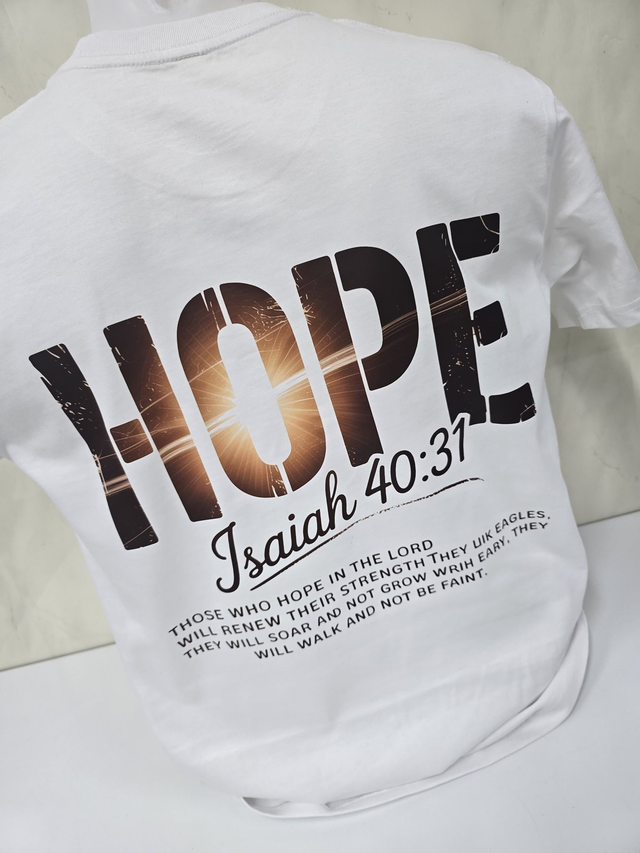 Stay inspired and showcase your faith with this stylish Hope T-Shirt featuring the powerful Bible scripture Isaiah 40:31. Crafted from soft, breathable fabric, this spiritual tee offers all-day comfort while reminding you that those who trust in the Lord will renew their strength. Perfect for daily wear, church gatherings, or as a meaningful gift for loved ones, it helps keep your faith front and center. The elegant design combines modern style with uplifting scripture, making it an ideal choice for anyone seeking encouragement and spiritual motivation. Embrace hope and faith every day with this unique Isaiah 40:31 T-Shirt.