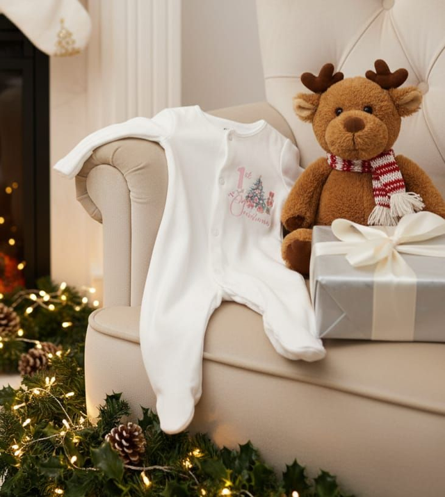 Celebrate your little one's first holiday season in style with our adorable "1st Christmas" Babygrow. Designed specifically for babies’ first Christmas, this soft, comfortable babygrow features festive prints and cozy fabric, perfect for keeping your baby warm and snug during the festivities. Made from breathable, high-quality cotton, it’s gentle on delicate skin and easy to wash, ensuring long-lasting use throughout the holiday season. Ideal for capturing precious memories and holiday photos, this babygrow makes a thoughtful gift for new parents or a special treat for your own bundle of joy. Make your baby’s first Christmas unforgettable with this charming and practical outfit!